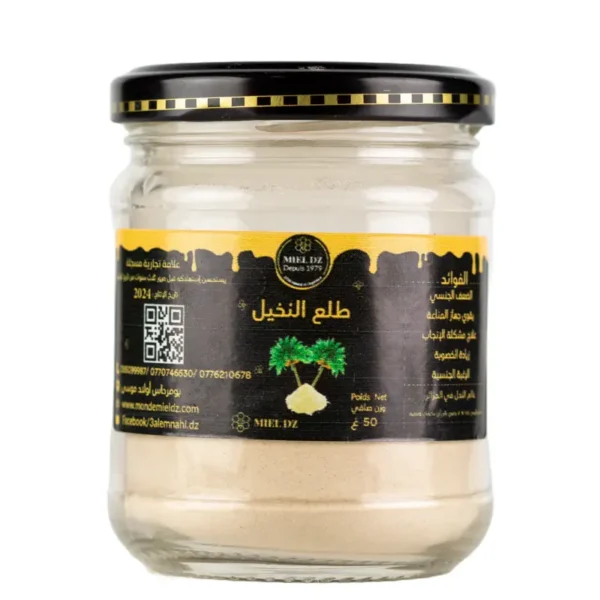 طلع النخيل الأصلي والطبيعي 100%، خاضع للتحاليل، يساهم في علاج عدة أمراض مزمنة ومستعصية عن العلاج ويزيد الخصوبة عند النساء ومعالجة مشاكل العقم بالإضافة للعديد من الفوائد. متوفر في حجم 50غ.